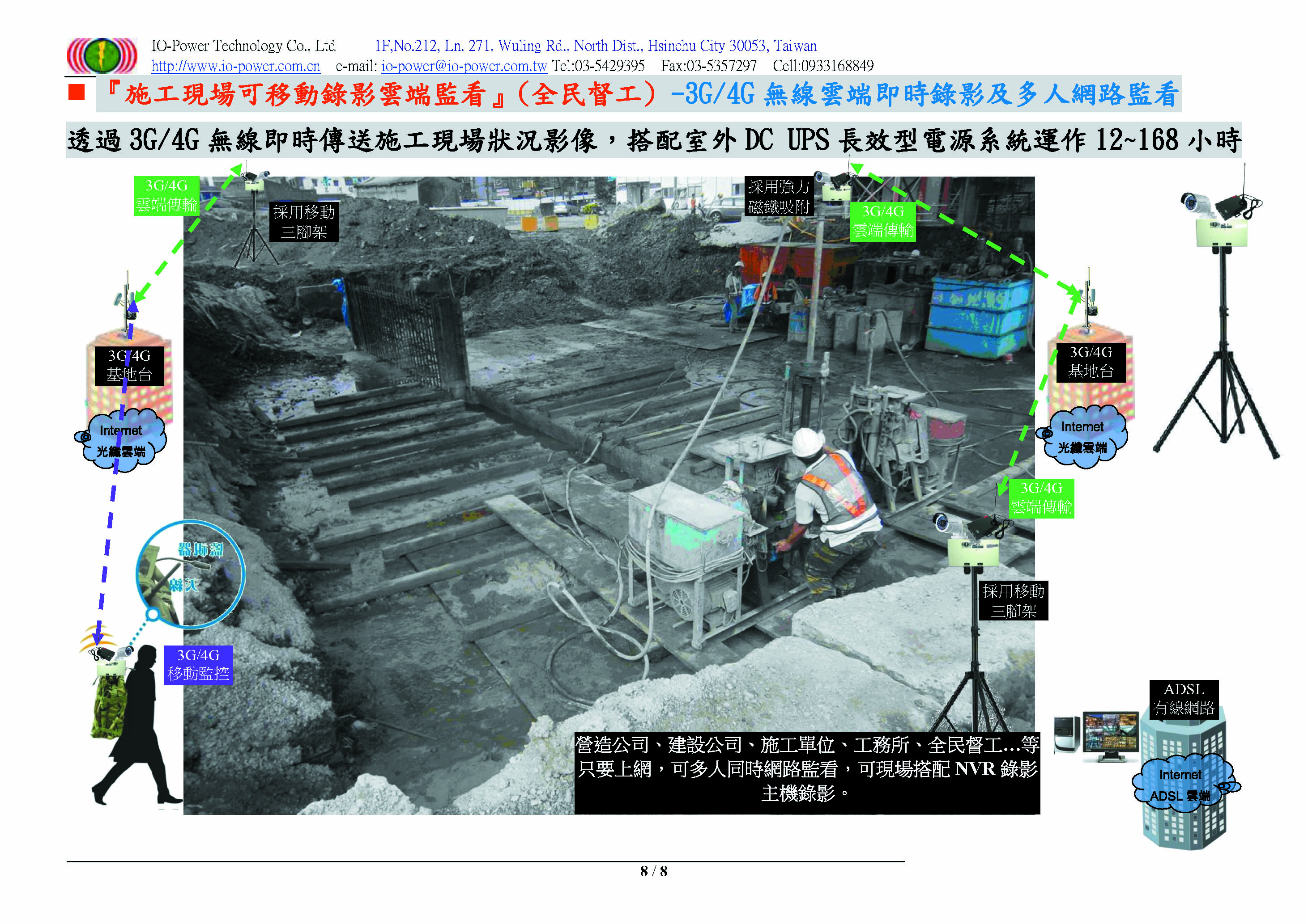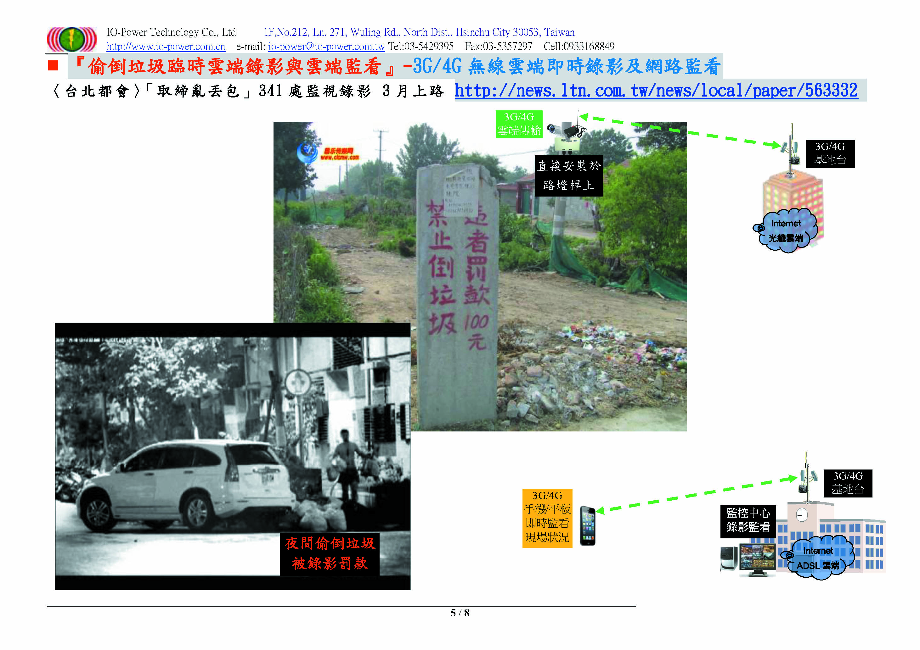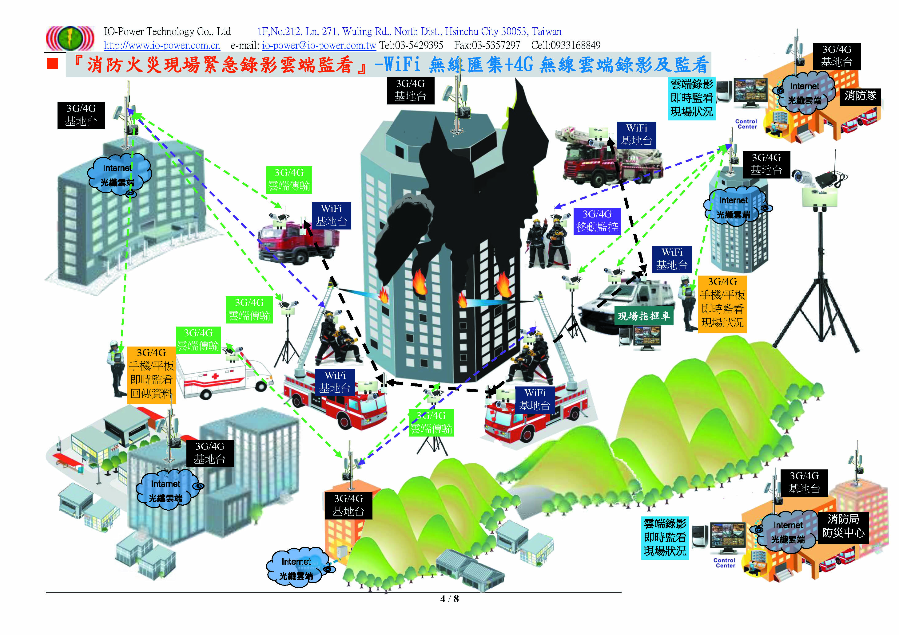 應用於『消防火災現場緊急錄影雲端監看』、『緊急事故臨時可移動錄影雲端監看』、『偷倒垃圾臨時可移動錄影監控』、『森林山老鼠可移動錄影雲端監看』、『臨時活動可移動錄影雲端監看』、『施工現場可移動錄影雲端監看』、『路跑活動可移動錄影雲端監看』…等錄影雲端監看系統使用