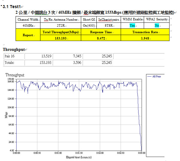 -- (2Km中繼跳台3次頻寬153Mbps測試報告下載) --